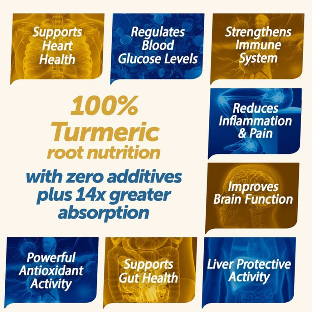 supplement to provide 100% turmeric root nutrition. A one of a kind turmeric supplements formula, our unique process extracts hundreds of nutrients from the turmeric root, in addition to curcumin. The result is a natural and advanced complex that delivers 45-50% curcuminoids and over 200 critical turmeric nutrients. These nutrients may work together to support healthy inflammation response, joint health, brain function, and overall wellness.  Making our one of a kind anti-inflammatory supplement perfect for those who are looking for a natural way to improve their overall health and well-being.
